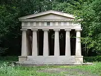 The history of Natolin begins at end of the 17th century, when the King of Poland John III Sobieski started the construction of a royal zoological garden in the village of Natolin.[3] It was a part of his royal residence of Wilanów and also served as a hunting lodge. In early 1730s his successor, King August II the Strong, reformed the garden into a pheasant breeding and hunting area. The place was thus called Bażantarnia – Pheasantry. With time the former royal grounds were passed to the mighty Czartoryski family. In 1780 Prince August Czartoryski built on the spot his new summer residence.[3] Located in dense forests on the escarpment of the Vistula River, the new classicist palace was designed by a renowned contemporary architect Szymon Bogumił Zug while the internal design was prepared by Vincenzo Brenna.[3] The palace featured a distinctive half-open salon, with a view on the forest below the escarpment.