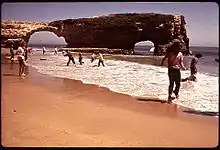 The displacement of the natives began with the Spanish colonization of the Americas when missionaries and soldiers brought the Ohlone into the missions. The population of Native Americans was greatly reduced by European diseases to which they had no resistance.[3] Governance of the area was transferred from Spain to Mexico after the Mexican War of Independence. The citizens of Mexico used what is now Natural Bridges State Beach as pasture land for their cattle. California became part of the United States after the Mexican–American War.[3]