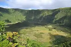 ![]() The caldera floor of Faial's stratovolcano, integrated into the dispersed Parque Natural do Faial | |