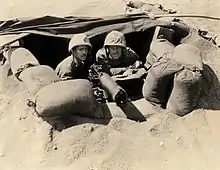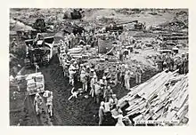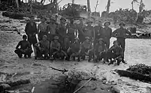 A Co was the major component of the shore party posted to 1st Battalion 23rd Marines or 1/23 which was the left "Assault" battalion for yellow beach. D-day they landed a 0935 on yellow beach 1 from APA 158 – USS Newberry[6][15][16][17] and LSM 206. A Co 4th Pioneers was split in two to share their combat experience/knowledge and was attached to A Co 133.[18] One of A Co's security sections (30 men) landed in 4 LCVPs with one 7-man gun crew and 37mm Gun M3 in each craft.[19] One LCVP took a direct hit killing the entire gun crew. 133's gun crews were immediately tasked with supporting the assault. A Co's other security section landed on the heels of the first wave and were the first Seabees to set foot on Iwo Jima. The Battalion cruise book states the security section was sent to the front line until their skills were needed on the beach. The USN beach party from the USS Newberry served A Co.[20] Also with A Co was a 32-man beach team from the 8th Marine Depot Company as well as A Co. 24th Marines replacement draft (1/24).