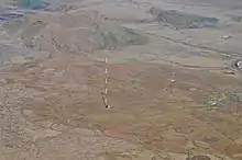 NRTF Grindavik originally had two towers for its longwave service – the west tower with a height of 243.8 metres (800 ft) and the east tower with a height of 182.9 metres (600 ft) – which were, when built, the tallest man-made objects in Iceland. In 1983, the east tower was replaced by a new tower of the same height. The west tower was replaced by a new 304.8-metre (1,000 ft) guyed mast and 2,500-square-foot (230 m2) helix house, now the second tallest structure in Iceland, after the Hellissandur longwave radio mast.[1]