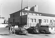 The Armory was about 90% complete at the entry of the US into World War II. All construction was abandoned and the building - without windows or plumbing - was boarded up. In 1942, the City of Santa Barbara leased 0.9 acres of the harbor to the Federal Government for the construction of a Navy wharf used in conjunction with a degaussing range offshore. The following year several Naval Reservists were ordered to active duty to put the Armory building in shape, and the facility was designated Small Craft Training Center, Santa Barbara and used for a minesweeping school.[1] Photos from the period show a number of destroyers and sub-chasers tied up to Navy Pier. (Note: In 1959 the Federal Government transferred Navy Pier to the City of Santa Barbara.) Members of the Sixth Division moved from the basement of the Santa Barbara County Courthouse to the Naval Armory. They were again called for duty during the Korean and Vietnam Wars.