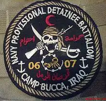 NPDB2 sailors served in Iraq at Camp Bucca under the command of the US Army's 16th Military Police Brigade. During its deployment one sailor was awarded the Purple Heart for injuries in combat, and another died as a result of a self-inflicted gunshot wound to the head.[1][2][3] Additionally, two sailors received battlefield promotions through the Combat Meritorious Advancement Program for their achievements during the deployment.[4]