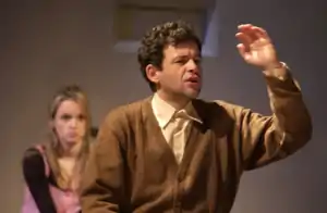 He had a notable role in the play "Dark Night," which premiered in 1993 at the Kult Theater, experienced three hundred performances, became one of the most commercial plays, and was played on tours in the United States and Canada.[74][75][76]