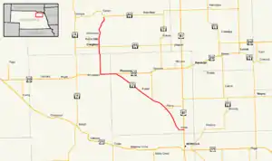 - 1 2 3 "Nebraska Highway Reference Log Book" (PDF). Nebraska Department of Roads. 2015. pp. 49–50. Retrieved January 6, 2017.