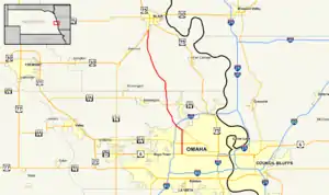 Nebraska Highway 133 (N-133) is a state highway in Douglas and Washington counties in Nebraska, United States, that conencts U.S. Route 6 (US 6) in Omaha with U.S. Route 30 (US 30) in Blair. For its entire length, N-133 is a four-lane divided highway.[3]