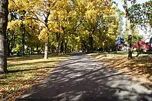 A residential neighborhood composed of post-war houses in the northwest of the city, it features a large recreation and sports complex known as Shadle Park, as well as being home to Shadle Park High School. There is also the historical Drumheller Springs, the site of the first American-style school built in the Oregon Territory, circa 1830. Local Indians were taught here by Chief Garry, a chief of the middle Spokane people who preached Christianity and peace among the Native Americans that inhabited the Inland Northwest. The site is now managed by the Spokane Parks and Recreation Department as a natural area, and has been adopted by the Upper Columbia United Tribes, for whom it is a traditional campground.[16][17] A trail that once led from downtown Spokane all the way to Canada still runs through the preserve.