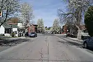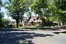 Neighborhoods in Spokane range from the late Victorian-era to the contemporary. With major peopling coming from the city's origins as a major rail center in the early 20th century, before the automobile, this has had an indelible impact on the urban form and character of Spokane and its neighborhoods.[1][2] As the primary mode of transport was rail during its intensive growth phase, Spokane's first neighborhoods were dense streetcar suburbs, neighborhoods outside the hectic downtown where real estate companies developed transit-oriented housing where the interurbans were integral to their convenience and value.[3][4][2] Much of Spokane city proper consists of traditionally planned neighborhoods with gridded streets that meet at straight, right angles that are well suited to efficient rail transit and often included a neighborhood shopping center on the block for residents.[5][6] Spokane's interurban lines extended from Francis Avenue in the north to 38th Avenue on the South Hill.[3] Beyond the former streetcar suburbs lie typical post World War II Suburban developments that consist mostly of single family housing.