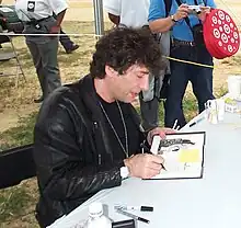 Neil Gaiman autographing a copy of Coraline, National Book Fair, Washington, D.C., 2005