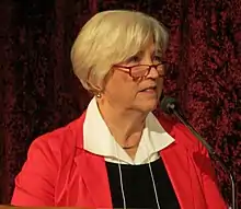 In February 2015, Marriott participated with other LDS Church leaders at a press conference in favor of bills protecting people from housing and employment discrimination based on sexual orientation, while also addressing the need for protection of religious liberty.[5][6] Marriott also was one of the church's representatives at a meeting announcing a bill incorporating these principles being introduced to the Utah legislature in March 2015.[7] In 2018 she presented at the International Center for Law and Religion Studies conference a talk entitled, What Can a Lay Person Do to Protect Religious Freedom? and spoke about her father, a judge, attorney, and member of the board at the First Methodist Church in Alexandria, Louisiana.[8]