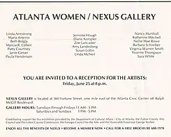 - Atlanta Women, Nexus Gallery, Atlanta, GA, June 25 - August 8, 1982.