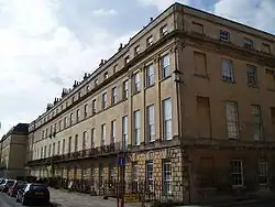 Nelson Place West is a Grade II listed Georgian terrace of houses in Bath, Somerset, England. It was built as "Nelson Place" in the early 19th century, and the suffix "West" was added to avoid confusion with Nelson Place East on the other side of the city. The end houses (Nos. 1 and 9) have Ionic pilasters and there is a wrought iron balcony on the second floor of Nos. 2–8.[1] These features match the adjacent Norfolk Crescent, which was built as part of the same urban development.