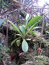 The lower pitchers of this species are often embedded in thick Sphagnum moss, allowing them to trap small terrestrial animals such as snails.