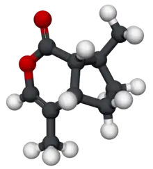 - ↑ Zimmermann N, et al. (2012). "Stereoselective synthesis of trans-fused iridoid lactones and their identification in the parasitoid wasp Alloxysta victrix, Part I: Dihydronepetalactones". Beilstein Journal of Organic Chemistry. 8 (1): 1246–1255. doi:10.3762/bjoc.8.140. PMC 3458745. PMID 23019455.