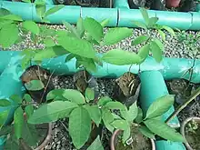 Nephelium chryseum is a species of plant related to the rambutan. The plant produces edible fruit that are covered in hard red shells with spikey spines. It is native to southern China, Borneo, the Philippines, and Vietnam.