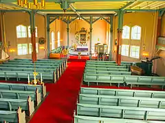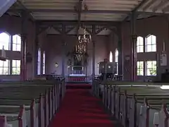 By 1880, the congregation had outgrown the small church, so a new church was built about 50 metres (160 ft) south of the old church. After the new church was completed, the old church was torn down and the materials were sold. The new church was consecrated on 17 September 1880. This new building was also a cruciform shape, but slightly modified. The inner corners of the cruciform design were cut off, forming more of an octagonal central area.[3]