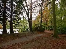The Ness Islands (Scottish Gaelic: Na h-Eileanan Nis) are situated on the River Ness, opposite the Bught Park, in the city of Inverness, Scotland.[1] The first bridges to the islands were built in 1828; prior to their construction the only access to the islands was by boat. The original bridges were washed away in the flood of 1849 and were replaced in 1853-1854 by two suspension bridges designed by William Dredge.