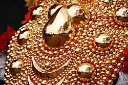 Nettipattom is a complex ornament. It has 11 objects in the shape of half moon, a pointed object called Koomban kinnam, 2 round ones, 37 half balls, 40 full balls, 1 kalanji and 5000 small bubbles inside it.