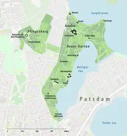 This article is based on a translation of the equivalent article "Neuer Garten Potsdam" in the German Wikipedia.