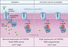- ↑ Sanders KM, Ward SM (January 2019). "Nitric oxide and its role as a non-adrenergic, non-cholinergic inhibitory neurotransmitter in the gastrointestinal tract". British Journal of Pharmacology. 176 (2): 212–227. doi:10.1111/bph.14459. PMC 6295421. PMID 30063800.