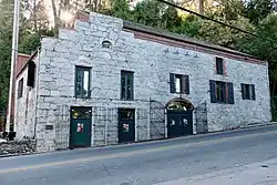 In 1882, George Gehrig, a local businessman, hired Italian stonemasons and Chinese laborers to construct a building up the street from the blacksmith's shop.[4] While the architect, builder, and engineer are unknown,[2] the three-story structure was constructed from locally quarried granite blocks. The stone and wood building is 10,000 sq ft (930 m2) in size.