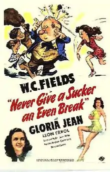 Never Give a Sucker an Even Break (known in some international releases as What a Man!) is a 1941 Universal Pictures comedy film starring W. C. Fields. Fields also wrote the original story, under the pseudonym Otis Criblecoblis. Fields plays himself, promoting an extravagant screenplay he has written. As he describes the script to a skeptical producer, the often surreal scenes are shown.