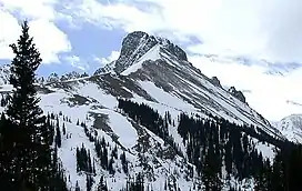 The Never Summer Mountains (Arapaho: Ni-chebe-chii) are a mountain range in the Rocky Mountains in north central Colorado in the United States consisting of seventeen named peaks. The range is located along the northwest border of Rocky Mountain National Park, forming the continental divide between the headwaters of the Colorado River in Rocky Mountain National Park to the local-east and the upper basin of the North Platte River (North Park) to the local-west; the continental divide makes a loop in these mountains. The range is small and tall, covering only 25 sq mi (65 km2) with a north–south length of 10 mi (16 km) while rising to over 12,000 ft (3,700 m) at over ten distinct peaks. The range straddles the Jackson-Grand county line for most of its length, and stretches into Jackson and Larimer county at its northern end. A panoramic view of the range is available from sections of Trail Ridge Road in Rocky Mountain National Park. One of the northernmost peaks, Nokhu Crags, is prominently visible from the west side of Cameron Pass.