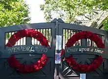 Originally named Zaca Laderas Ranch, the estate was renamed Sycamore Valley Ranch shortly after it was purchased by property developer William Bone in 1981.[3] In 1988, the ranch was sold to Michael Jackson, who renamed it after Neverland, the fantasy island in the story of Peter Pan, a boy who never grows up.[3][4] Jackson first went to the ranch when he visited Paul McCartney, who was staying there during their filming of the "Say Say Say" video in 1983. According to Jackson's sister La Toya, he expressed interest in someday owning the property at that time.[6]