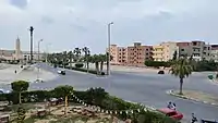 New Borg El Arab (Egyptian Arabic: برج العرب الجديده Borg el-ʿArab el-Gedīda) is a new Egyptian city of the first generation, located in Alexandria Governorate,[5] and administratively affiliated to the New Urban Communities Authority.[6] It was established by decree of the President of the Arab Republic of Egypt No. 506 dated December 5, 1979 under the name" New Amria City",[7] and it remained in that name until the decision of the Chairman of the council was issued. Ministers No. 1532 dated July 31, 1989 amending its name to become the New Borg El Arab city, with a total area of 47,403 acres (191 km2), about 55 km away from Alexandria, about 8 km from the Mediterranean coast and the Alexandria Matrouh coastal road, and about 3 km from Borg El Arab.[8]