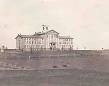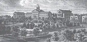 In the 1850s, the student bodies of Rutgers College and the Seminary began to expand, overcrowding the space provided at the Queens Campus.[5] The seminary professors realized that students renting rooms at boarding houses in the city were paying more for their housing than students at other seminaries—over double the costs of housing at New York City's Union Theological Seminary or at nearby Princeton Theological Seminary. The professors surmised that it would be cheaper to build a seminary building that provided both student housing and instruction space.[1]: p.72–73