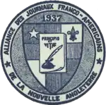Seal of the Alliance des Journaux Franco-Américains de la Nouvelle Angleterre, a trade organization of French-language newspapers in New England extant from 1937 to 1963.[12]:258
