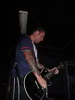 Critics have praised the band for their ability to write infectious hooks and the sincerity of their lyrics, often about growing up and relationships.[1][104][105] Chad Gilbert has noted that, "if the delivery is honest and real, that's what keeps it from being the corniest thing you've ever heard before. New Found Glory is a band that people enjoy listening to not because we give off this harsh message. We write about who we are and what affects us in life and those are our relationships".[39] Bassist Ian Grushka has stated that "all of the lyrics are based on real life experiences. A song can be created from something one of us is going through or a conversation we've had."[3] While also adding, "We only really talk about personal things that have affected us first-hand, our songs are about emotions rather than some political agenda."[106] Rhythm guitarist Steve Klein was the band's primary lyricist, while lead guitarist Chad Gilbert is the main composer of the songs. Although since the recording of Coming Home, Klein, Pundik and Gilbert all worked on lyrics together.[39] They have recorded covers of The Ramones, Shelter, Lifetime, Gorilla Biscuits, Bing Crosby, Nat King Cole, The Wonders, Limahl, Aerosmith, Cyndi Lauper, Peter Cetera, Bryan Adams, Celine Dion, Sixpence None The Richer, Bob Dylan, When In Rome, Go West, Lisa Loeb, The Cardigans, Goo Goo Dolls, Simple Minds, Yann Tiersen, Madonna, Tears For Fears and Survivor. New Found Glory's influences include Green Day, Texas Is the Reason, Björk, Silverchair, They Might Be Giants, The Get Up Kids, Earth Crisis, Discount, The Promise Ring, Blink-182, Unwritten Law, Britney Spears, The Beatles, Pennywise, NOFX, Bad Religion, Superchunk, Dinosaur Jr., Nirvana, Sparklehorse, Rocket from the Crypt, Descendents, My Bloody Valentine, and Sugar.[107][108][109][110][111]