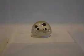 At the request of Nixon, NASA had about 250 presentation plaques made following Apollo 11 in 1969. Each included about four rice-sized particles of Moon dust from the mission totaling about 50 mg.[1][2] The Apollo 11 lunar sample display has an acrylic plastic button containing the Moon dust mounted with the recipient's country or state flag that had been to the Moon and back. All 135 countries received the display, as did the 50 states of the United States and the U.S. provinces and the United Nations.[1]