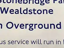 Johnston (or Johnston Sans) is a sans-serif typeface designed by and named after Edward Johnston. The typeface was commissioned in 1913 by Frank Pick, commercial manager of the Underground Electric Railways Company of London (also known as 'The Underground Group'), as part of his plan to strengthen the company's corporate identity.[1] Johnston was originally created for printing (with a planned height of 1 inch or 2.5 cm), but it rapidly became used for the enamel station signs of the Underground system as well.[2]