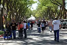 The fair was first held in October 1881 under the direction of Elias S. Stover.[2] Originally referred to as the territorial fair, it became a state fair in 1911 in anticipation of New Mexico's upcoming statehood.[3] The original fairgrounds, also known as Traction Park, were southwest of Old Town Plaza and were promoted as a year-round destination by the Albuquerque streetcar company in order to boost ridership on their line.[4][5] In 1917, the fair was canceled and replaced with a "great patriotic demonstration" marking the recent U.S. entry into World War I.[6] Subsequently, the State Fair was not held for several years.