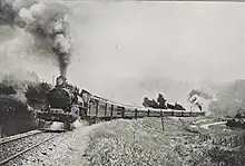 In 1901, NZR and the WMR co-operated to accelerate the train by eliminating the change of trains at Longburn. By this stage, the train ran every day except Sunday, and on four days a week NZR's train ran all the way through to Wellington, while on the other two days the WMR's train ran to New Plymouth.[6] This cut the travelling time down to 12 hours and 50 minutes,[4] and in 1902, NZR eliminated refreshment stops by introducing dining cars of its own. The Express was the second train in New Zealand to be equipped with dining cars, after the South Express, and thus the first in the North Island.[6]