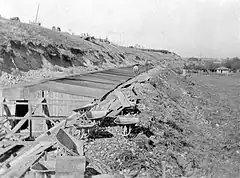 In 1890, the company secured investment capital of $300,000 to complete work on the canal. The general contractor was Denver railroad builder William C. Bradbury, and the company believed the canal would be finished in 1891.[9] By September, 1890, 220 workers were employed, and the company advertised employment for 1000 workers. But progress on the canal continued into 1892, when work stopped because of disagreements between investors; work resumed in 1893.[10][11]