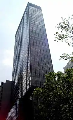 The New York Merchandise Mart, also known as 1 Madison Square Plaza, is a building in the Flatiron District of Manhattan, New York City, at 41 Madison Avenue at East 26th Street adjacent to Madison Square Park.[1] The building is a 42-floor, 175.57 metres (576.0 ft),[1] International style skyscraper with an unadorned facade of brown aluminum and darkened black glass, and was designed by Emery Roth & Sons. Completed in 1974,[2] the skyscraper was built for the tableware, decorations and gift industries as a showcase and trade facility. It has 23 floors of showrooms featuring products from 85 manufacturers,[3] and is managed by Rudin Management Company.