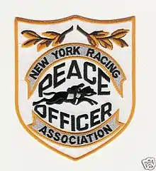 The force consists of uniformed officers & supervisors, fire marshals, plain clothed investigators and inspectors, all of whom maintain New York State Peace Officer status, thus giving them arrest and investigatory powers, the authority to issue summonses, and the ability to carry defensive weapons including a firearm, baton, pepper spray, and handcuffs. Uniformed members wear navy blue style uniforms with gold on white NYRA patches on their left side and an American flag patch on the right side. NYRA Peace Officers wear eagle-top shields, typically gold in color regardless of rank. NYRA Inspectors wear gold shields, similar in design to that of NYPD Detectives, but do not wear uniforms or logos thereof.