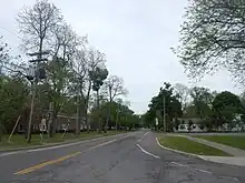 Officially, NY 18F begins at the eastern edge of the village of Lewiston at an interchange between NY 104 and the Niagara Scenic Parkway.[1] Signage for NY 18F, however, exists as far south as the interchange between NY 104 and NY 18 south of the village. According to signage, NY 18F is concurrent to NY 104 from NY 18 north to the interchange between NY 104 and the Moses Parkway, where NY 18F and NY 104 split at the western extent of the interchange. The Seaway Trail, routed along NY 104 from Niagara Falls north to Lewiston, follows NY 18F west into Lewiston along the path of Ridge Road, here named Center Street. At 4th Street, NY 18F turns northward, following 4th Street for four blocks to Oneida Street. NY 18F cuts west on Oneida for two blocks before continuing northward out of the village on 2nd Street.[3]