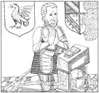 On 9 January 1586, Drake was knighted by Elizabeth at Greenwich in recognition of his success.[11] A couple of months later, the surviving Portuguese prisoners, whom Drake had had imprisoned in Exeter, were put on trial, the charge perhaps being mutiny.[3] The trial during the notorious Black Assize of Exeter from 14 March 1586 was held at Exeter Castle. Within little more than three weeks, many of the men of the trial succumbed to disease, as they had been exposed to the Portuguese prisoners, who also succumbed.[22] Bernard Drake died too in Crediton on 10 April 1586, and was buried two days later while his son John inherited the profits of the Newfoundland voyage.[22]