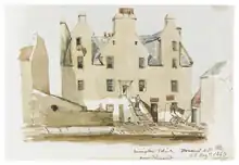 The modern bounds of Newington contained some smaller development prior to the end of the 18th century. The farmlands of Mayfield, earlier known as Newlands, centred on Mayfield House on Mayfield Loan.[15] This land had first been feued out of the Burgh Muir in 1530.[16] Prior to 1800, there were also cottages at Echo Bank on Dalkeith Road and at the Powburn near Mayfield Road.[17] There was also development along Causewayside, including a house whose two sections were known as Broadstairs House and Wormwoodhall. This stood on a site between Salisbury Place and Duncan Street until its demolition in 1880. James Grant attributes the house to a doctor of James IV or V, in whose family, Grant claims, the house remained until the end of the 18th century, after which it became slums.[18][19] Summerhall was feued in 1705 and a brewery is recorded there as early as 1739.[18][20]