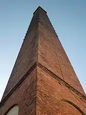 The brick chimney is located along Mina Parade, approximately 40 metres (130 ft) from the road. Access to the site is via an easement. The chimney rises to a height of approximately 55 metres (180 ft), and is, consequently, a prominent landmark. The square base is approximately 4.7 metres (15 ft) long. The chimney rises about 10 metres (33 ft) before tapering uniformly to about 3 metres (9.8 ft) square. On each face of the bottom section of the chimney there are a number of arched recesses, which appear to be decorative elements. One of the recesses, on the south side of the chimney, facing Mina Parade, has been enclosed with concrete. Several bands of brick as the top of the chimney flue provide further decorative elements to the structure. A metallic band running the length of the chimney on its eastern side, appears to be related to deflecting lightning strikes. Similarly, on the upper section of the chimney, a number of metallic bands are attached around the structure.[2]