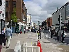 From its development Newtown Pery has served as Limerick's CBD. It is also the city's main retail district which is centered on O'Connell Street, William Street and the adjoining streets. In addition to the quality of the Georgian heritage in the district, another striking feature of the development is the grid plan layout of the streets in the area running north–south and east–west in similar fashion and design as found in New York City, Philadelphia, Glasgow, Bristol and Berlin albeit on a smaller scale.[6] This distinguishes Limerick's Georgian stock to the other major Irish Georgian development in Dublin, as Limerick's terraces are more uniform. This is due to the fact that the Pery owned all the land that was developed and it enabled a single development plan.