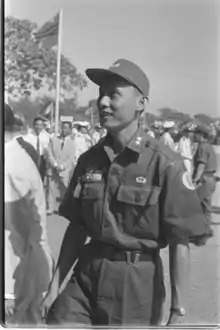 However, the relatively cautious Thiệu, Có and Cang's preparations were well behind those of Colonel Phạm Ngọc Thảo, a communist double agent.[28] Có and the other American-preferred officers maintained a guarded approach, waiting to see what others would do, rather than boldly taking the initiative,[28] and Thảo struck first. The Americans opposed Thảo, and with their support, Kỳ and Thi defeated the coup and then overthrew Khánh as well, becoming the most important officers in the resulting junta.[29][30][31][32] In mid-1965, Air Marshal Nguyễn Cao Kỳ became prime minister and General Thiệu as the figurehead president. They headed a 10-man junta of which Có was a part until elections were held in 1967. Có was the Deputy Prime Minister and Defense Minister.[1]