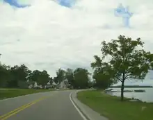 North of the bridge, the route descends the Niagara Escarpment near Brock's Monument, a column which commemorates the death of Sir Isaac Brock during the Battle of Queenston Heights. At the bottom of the escarpment, the route passes the village of Queenston.[8] The parkway meanders north, parallel to the river, with houses lining the western side. Approaching the town of Niagara-on-the-Lake, the road becomes known as Queen's Parade. It diverges from the river and travels northwest towards the town, ending at Fort George.[3]