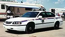Niagara Regional Police Service marked patrol vehicles have historically been white in colour. In the late 1980s to the early 1990s, they were distinguished with royal blue hoods and a single blue stripe on the sides of the vehicle. In the mid-1990s, the service adopted the crest used today, switching to blue and green stripes on the sides of patrol vehicles, and abandoning the traditional blue hoods. This striping change was relatively short lived, with the service soon adopting red and blue striping more commonly seen on police vehicles in Ontario. In 2013, the Niagara Regional Police Service commenced a re-branding of marked patrol vehicles, adopting a black and white colour scheme, with silver and red graphics, which is being phased in as vehicles are replaced through attrition.