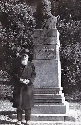 Smochină focused his research on recovering old texts from sources such as the Bibliothèque Nationale and Musée Slave.[6] Various reports suggest that he earned a Ph.D. in History from the University of Paris,[48] with Ferdinand Lot as his doctoral advisor;[6] historian Vladimir Solonari contradicts these sources: "he failed to obtain a doctorate there, [but] managed to collect rich materials on the history of the Transnistrian Mold[avi]ans, some of which he later published in Romania."[49] He also began teaching Romanian at Société pour la Propagation des Langues Etrangères, a learned society funded by the University of Paris.[6][50] At the time, Smochină's first account of the 1917 Lenin interview was published by Le Prométhée, the propaganda outlet for the Georgian Government in Exile.[16] He also built contacts with the White émigré cells, meeting with philosopher Nikolai Berdyaev.[6]