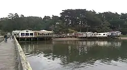 Croatian immigrants began settling in and around Marshall, California, a few miles south of what is now Nick's Cove, in 1900.[4] The Markovich brothers, who were Croatian fishermen, operated on Tomales Bay near what later became Nick's Cove in the 1920s. By 1930, there was a small facility for packing smoked herring at the cove. Nick Kojic arrived in the area in 1920, and in 1931, opened a seafood stand in a former herring smokehouse.[4] When Prohibition ended in 1933, he opened a bar. He called the business Nick's Cove. He also rented small cabins and cottages to tourists. Over the years, the business was owned successively by the Matkovich and Gibson families.[5] The bar burned in 1950 but was soon rebuilt. The business closed in the early 1990s.[4]