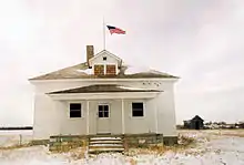 In 1878, John Wayne Niles served as the second president of the colony.[6] The early settlers found life in Nicodemus to be challenging. Some people turned around after seeing the scarcity of resources by mid-1878. Most were very poor farmers who came without money and other provisions. Without proper tools and equipment, such as plows, wagons, and horses, farmers could not efficiently develop the rough land; some resorted to using hand tools to make improvised fields. A lack of timber forced settlers to build homes out of prairie sod. To earn money some people collected and sold Buffalo bones found on the plains; others ventured miles away to work for the railroads.[4] In response to the hardships, townsfolk reached out to other communities, private charities, and even the Native American Osage tribe.